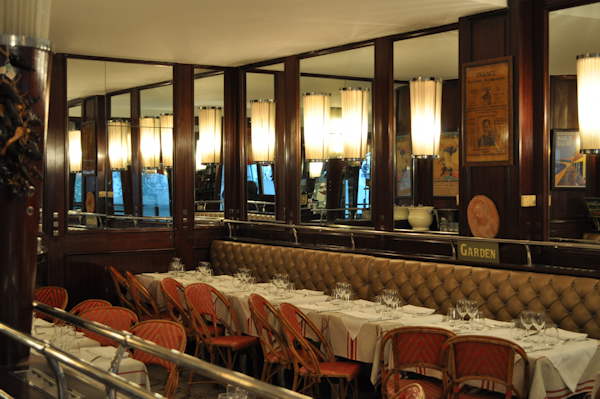 Cette brasserie fut décorée en 1925 mais préserve certaines parties plus anciennes si bien que l’Art Nouveau flirt subtilement avec l’Art Déco. L’endroit est spectaculaire mais réserve aussi des espaces plus intimes. On peut cependant regretter la destruction du petit salon ovale Art Nouveau en 2016.